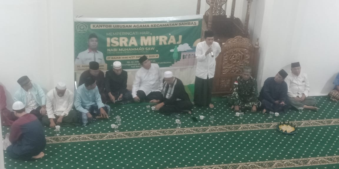 Sambas – Anggota Koramil 1208-01/Sambas Serma Teguh Indra menghadiri acara Isra Mi’raj Nabi Muhammad SAW, Kecamatan Sambas dan melaksanakan penyerahan Pendistribusian Sembako yang digelar di Masjid Darussalam, Dusun Manggis, Desa Tumuk Manggis, Kec.Sambas, Kab. Sambas, Selasa malam (28/01/25).