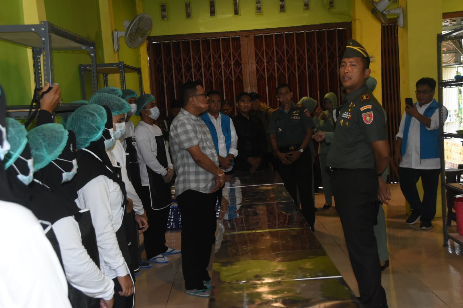 BARABAI- Dandim 1002/HST, Letkol Inf Fery Perbawa meninjau langsung lokasi dapur umum untuk persiapan uji coba makan gratis, Senin (20/1/2025).