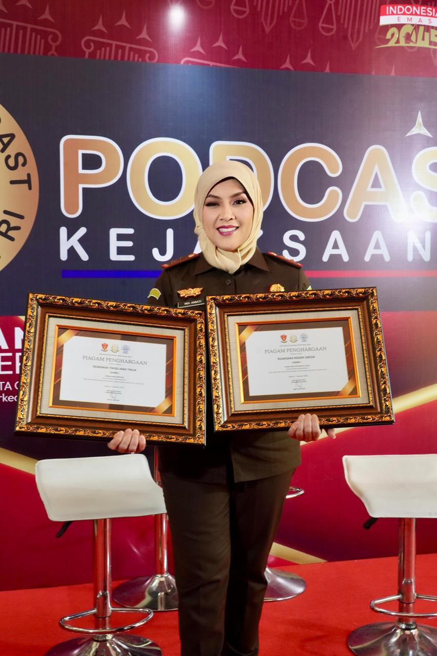 Pada pelaksanaan Rakernas Tahun 2025, Kajati Jatim Prof. (HCUA) Dr. Mia Amiati, S.H., M.H., CMA., CSSL., menerima penghargaan Terbaik I atas pembuatan Video Restorative Justice yang dibuat oleh satker Kejari Gresik berupa documenter video penanganan perkara RJ di wilayah hukum Kejari Gresik.