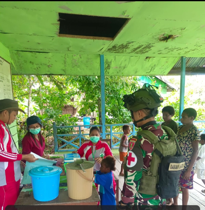 Kerjasama Satgas Yonif 611/Awang Long Bersama Puskesmas Jita Gelar Posyandu Bagi Masyarakat Distrik Jita