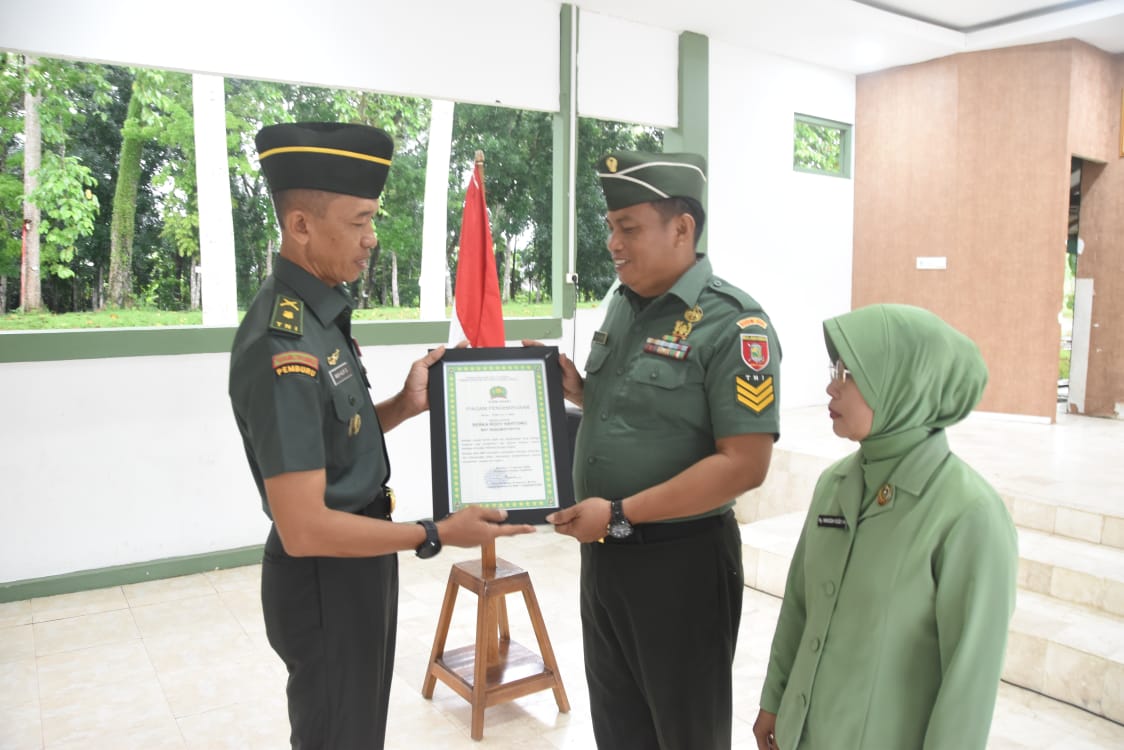 Dalam upacara ini, Kodim 1002/HST melepas Satu prajurit terbaiknya yang telah menyelesaikan masa pengabdiannya, yaitu Serka Rody Hartono.