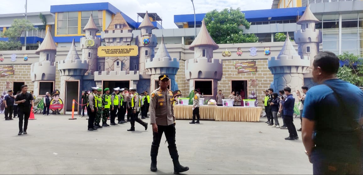 SIDOARJO, – Polresta Sidoarjo Polda Jatim menghadirkan Pos Pelayanan (Posyan) Natal dan Tahun Baru (Nataru) dengan tema replika Kastil.