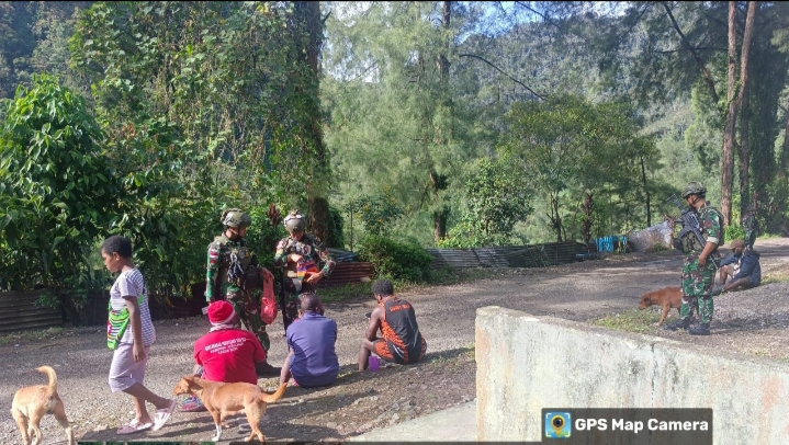 Banti – Satgas Yonif 611/Awang Long melaksanakan kegiatan Komunikasi Sosial (Komsos) dengan warga Desa Banti, Distrik Tembagapura, Kab. Mimika Papua Tengah, Sabtu (04/01/2025).