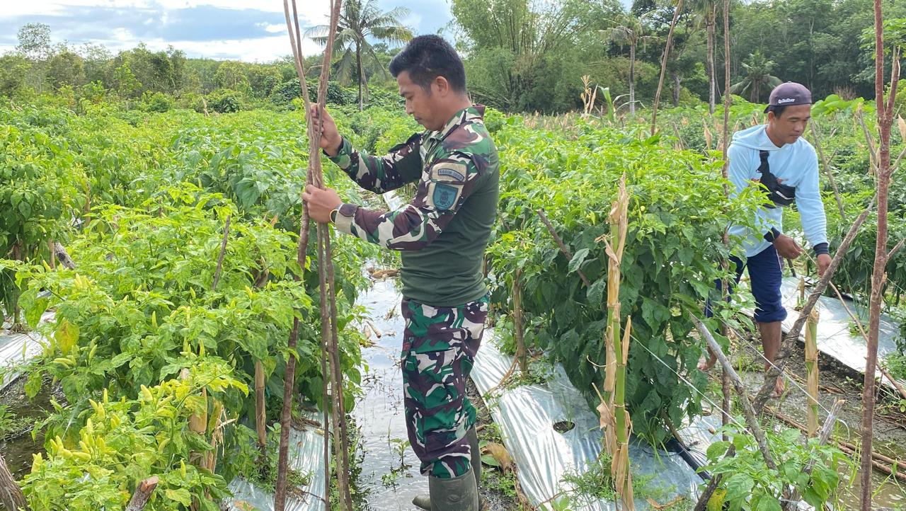 Tanah Laut – Peran aktif TNI melalui Babinsa di lapangan dalam meningkatkan ketahanan pangan di wilayah, tidak hanya semata difokuskan pada komoditi Padi yang merupakan makanan pokok masyarakat Indonesia. Akan tetapi juga difokuskan untuk meningkatkan produksi tanaman sayuran dan palawija. Salah satunya yakni komoditi cabai merah.