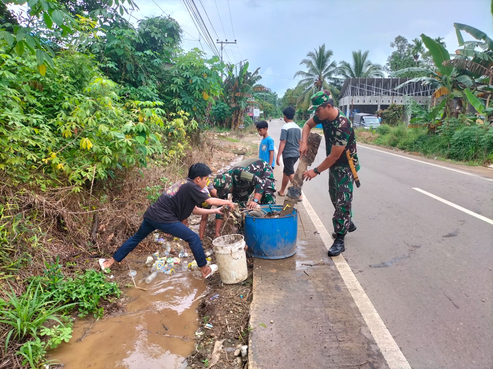 TNI dan Warga Desa Wayau Bersatu Jaga Kebersihan Parit, Cegah Banjir dan Demam Berdarah
