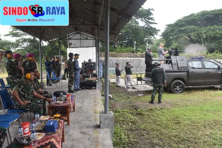 meninjau Uji Fungsi Senjata Mesin Sedang _(Gutling Gun) M134P_ kaliber 7.62 mm statis dipasang diatas kendaraan di Lapangan Tembak Arsenal, Batuporon, Madura. Jum’at (24/01/2025).