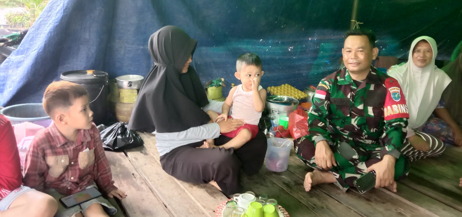 Babinsa Selakau Tua Sembangi Warga Binaan Yang Terdampak Banjir Di Tenda Darurat
