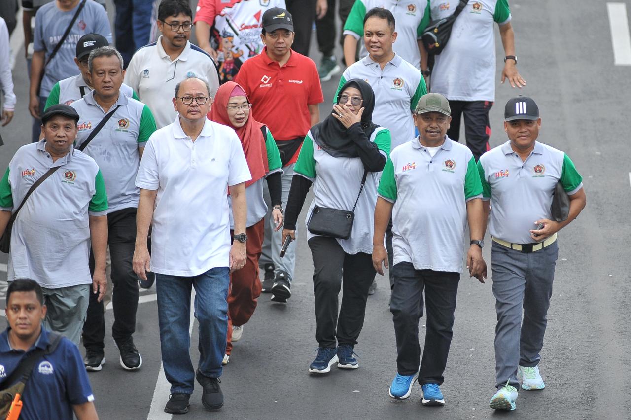 Jalan sehat yang dimulai dan berakhir di depan Gedung PWI Jatim, Jl Taman Apsari 15-17 Surabaya, atau depan Patung Joko Dolog, mendapatkan respon luar biasa dari masyarakat.