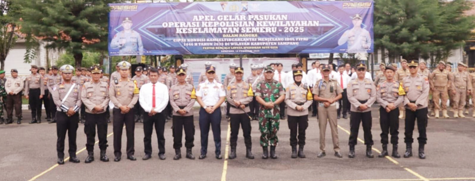 Apel gelar pasukan Operasi Keselamatan Semeru 2025 yang diikuti personil gabungan TNI-Polri, Sat. Pol PP dan Dishub Kabupaten Sampang dilaksanakan untuk mengetahui sejauh mana kesiapan seluruh sumber daya baik personil maupun sarana pendukung lainnya.
