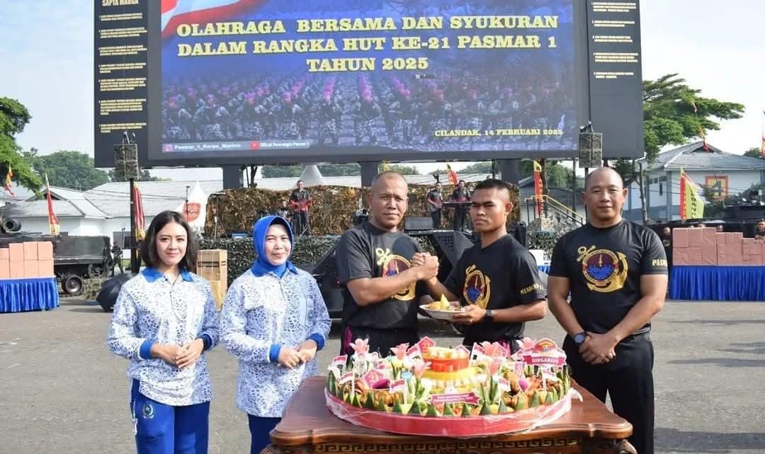 TNI AL, Dispen Kormar, Pasmar 1 (Jakarta). Puncak peringatan Hari Ulang Tahun (HUT) Ke-21 Pasmar 1 yang jatuh pada tanggal 13 Februari diisi dengan kegiatan olahraga bersama dan syukuran yang dilaksanakan di Lapangan Apel Brigif 1 Kesatrian Marinir Hartono Cilandak, Jakarta Selatan, Jumat (14/02/2025).