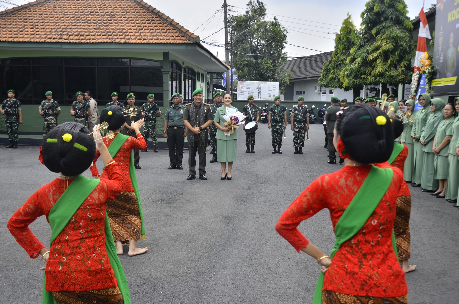 Seluruh anggota baik Militer, PNS dan Persit Kartika Chandra Kirana Cabang L Kodim 0735/Surakarta melakukan penyambutan dengan menyayikan lagu selamat datang Pahlawan Muda.