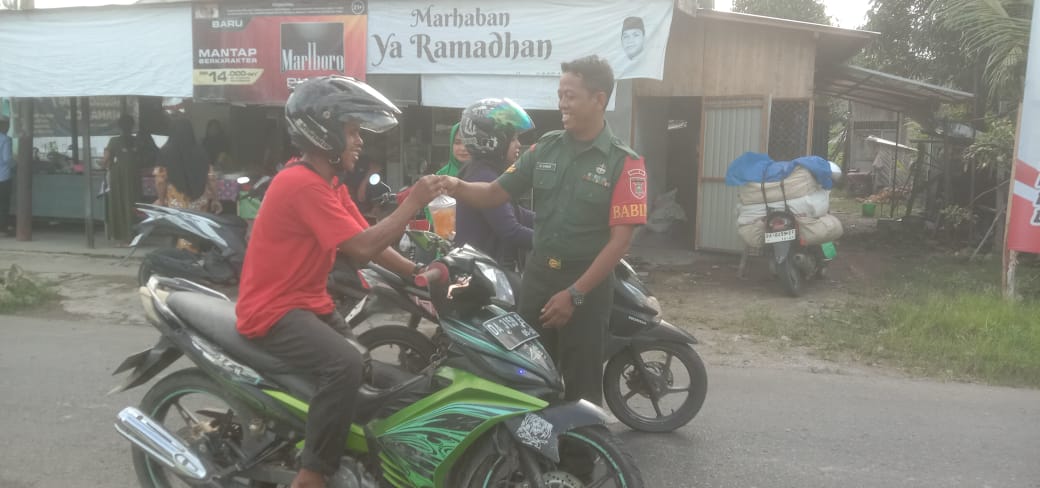 Danramil 1002-05/Pandawan Lettu Inf Fadillah, menjelaskan bahwa pembagian takjil gratis ini bertujuan untuk membangun semangat dan motivasi saling berbagi kepada sesama yang sedang menjalankan ibadah puasa.