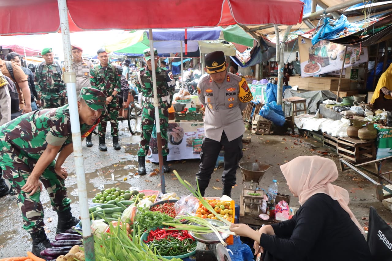 Barabai, Hulu Sungai Tengah – Menjelang Hari Raya Idul Fitri 1446 H/2025 M, Komandan Kodim 1002/HST, Letkol Inf Fery Perbawa.S.Hub.Int.,M,Han, dan Kepala Kepolisian Resor Hulu Sungai Tengah (Kapolres HST), AKBP Jupri JHP Tampubolon, S.I.K., bersama Pejabat Utama (PJU) Polres HST, melakukan pengecekan harga sembako di Pasar Keramat Barabai, Kabupaten Hulu Sungai Tengah (HST), pada hari Sabtu, 29 Maret 2025.