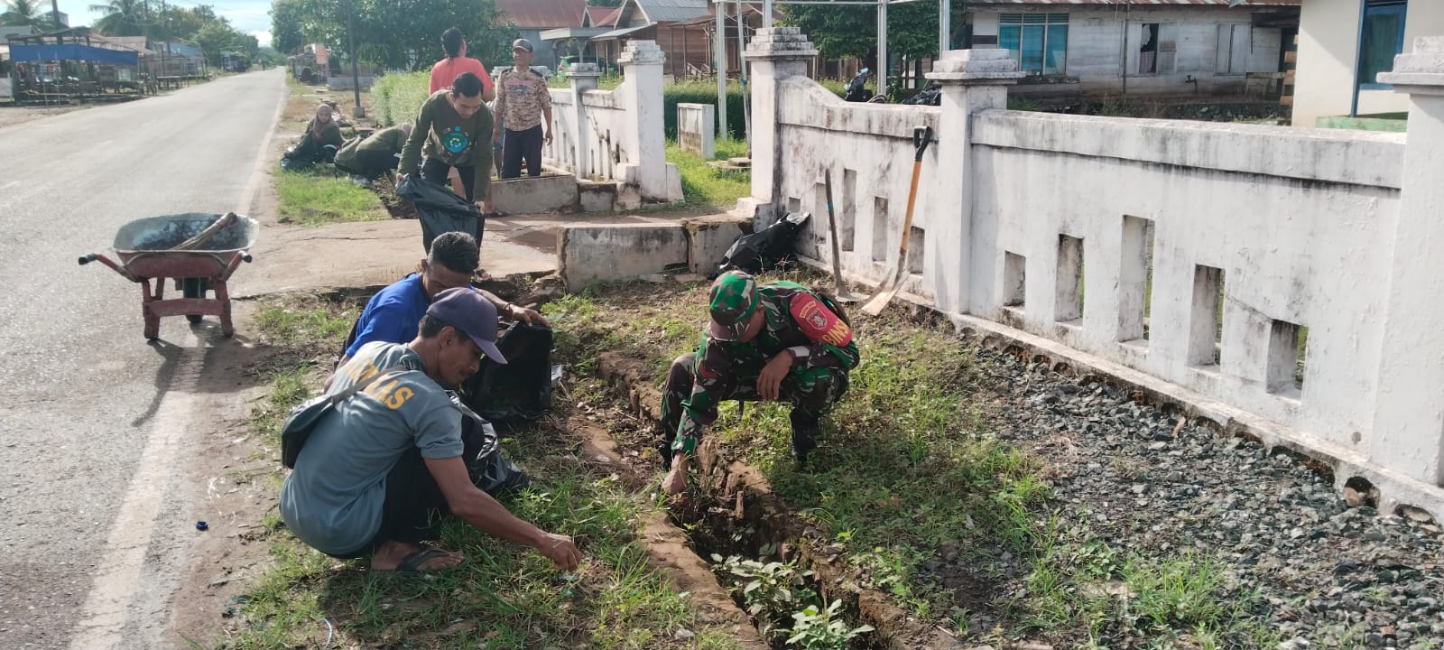 Oleh sebab itu Koptu Suyanto mengajak perangkat Desa bergotong royong membersihkannya. Kegiatan gotong-royong ini juga melibatkan warga masyarakat setempat untuk menumbuhkan kebersamaan di antara seluruh lapisan masyarakat. Sembari menghimbau agar masyarakat senantiasa menjaga kebersihan lingkungan, salah satunya parit yang sangat penting mengalirkan air hujan sehingga tidak mengganggu badan jalan maupun mencegahnya masuk ke pemukiman warga.