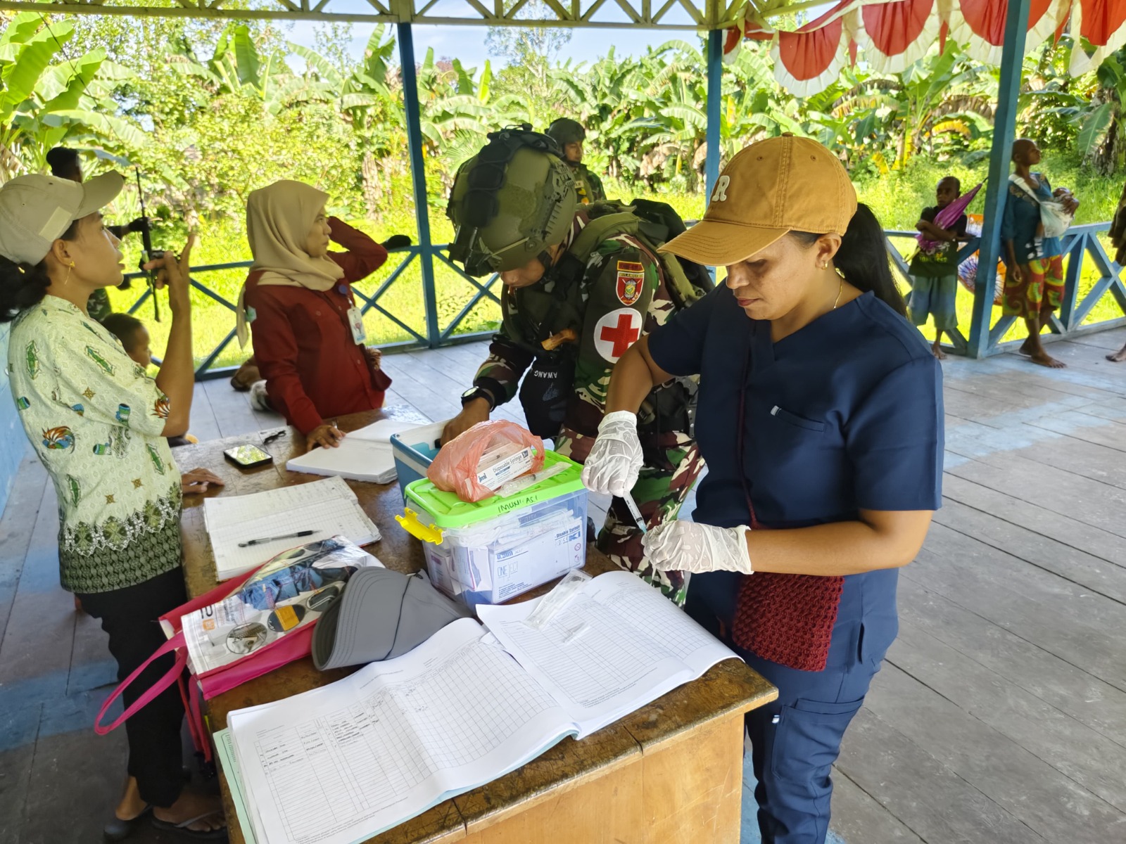 MIMIKA – Satgas Yonif 611/Awang Long bekerja sama dengan Puskesmas Jita mengadakan kegiatan Posyandu bagi ibu hamil dan anak Balita. Kegiatan ini diselenggarakan di Puskesmas Jita Kp. Sempan Timur dengan tujuan untuk meningkatkan kesadaran masyarakat akan pentingnya kesehatan bagi ibu hamil dan balita di wilayah Distrik Jita Kab. Mimika Papua Tengah. Kamis (17/04/2025).