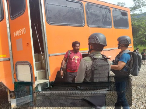 Satgas Yonif 611/Awang Long menggelar kegiatan pengawalan bus untuk mengantar masyarakat dari Ds.Opitawaak yang sedang berduka menuju Pos 4 Tembagapura, Kabupaten Mimika, Papua Tengah.
