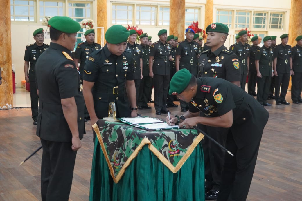 Jambi – Estafet kepemimpinan Komando Distrik Militer (Kodim) 0416/Bungo Tebo (Bute) resmi mengalami pergantian. Danrem 042/Garuda Putih (Gapu), Brigjen TNI Heri Purwanto, S.E., M.Sc. memimpin langsung acara serah terima jabatan (Sertijab) Dandim 0416/Bute dari Letkol Inf Arief Widyanto, S.E., M.Han. kepada Letkol Inf Dedy Pungky Irawanto, S.I.P., M.I.Pol., yang digelar secara khidmat di Balai Prajurit Korem 042/Gapu, Jambi, Jumat (11/4/2025).