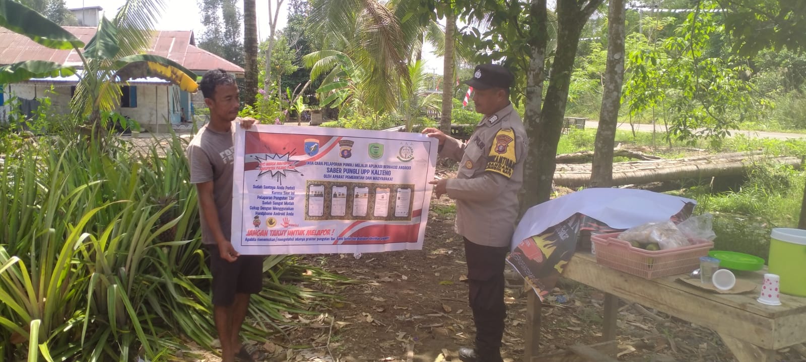 Berbekal Spanduk bersih pungutan liar, Bhabinkamtibmas memberikan informasi terkait tata cara pelaporan praktek pungli cukup menggunakan handpone melalui aplikasi berbasis android saber pungli Upp Kalteng, melalui aplikasi ini warga masyarakat dapat dengan mudah melaporkan apabila mengetahui ataupun menjadi korban pungutan liar oleh oknum tidak bertanggungjawab