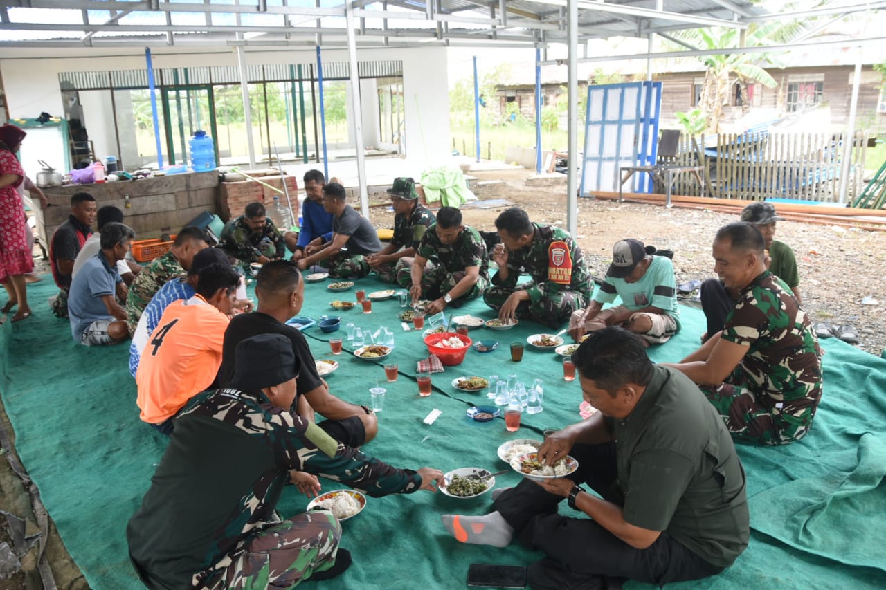 Momen kebersamaan terlihat jelas saat Dansatgas TMMD ke-124 Kodim 1002/HST menikmati hidangan makan siang sederhana bersama dengan warga.