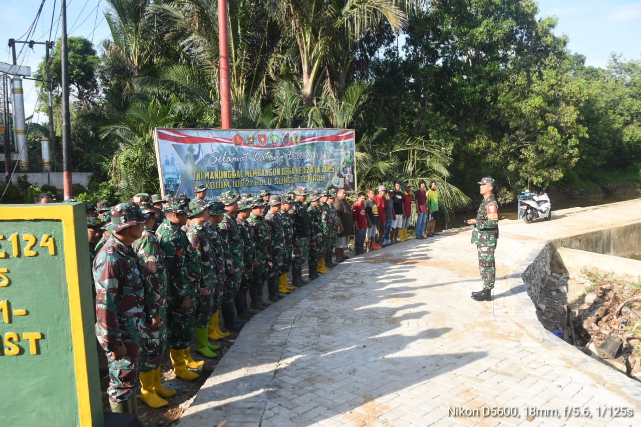 HARUYAN, HST – Komandan Satuan Tugas (Dansatgas) Tentara Manunggal Membangun Desa (TMMD) ke-124 Kodim 1002/Hulu Sungai Tengah (HST), Letkol Inf Fery Perbawa, memimpin apel pagi di titik nol sasaran pembangunan jalan sepanjang 1030 meter di Haruyan. Apel pagi ini dilaksanakan pada hari Jum’at, 30 Mei 2025.