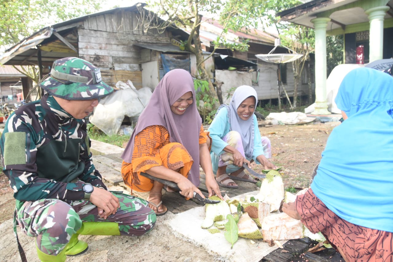 Pantauan di lapangan menunjukkan, para ibu dengan cekatan mengupas nangka muda yang akan dijadikan sayur, salah satu menu favorit untuk disantap bersama. Momen ini bukan sekadar aktivitas memasak, melainkan cerminan nyata dari kemanunggalan TNI dengan rakyat, di mana masyarakat secara sukarela dan penuh keikhlasan mendukung kegiatan pembangunan yang dilakukan oleh Satgas TMMD.