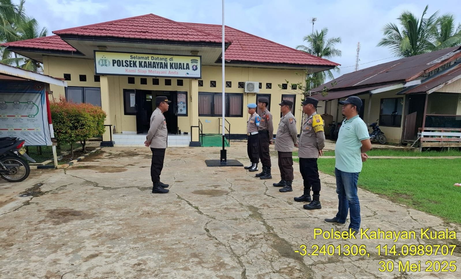 Polres Pulang Pisau- Polsek kahayan kuala, Resor Pulang Pisau, Polda Kalteng, melakukan kegiatan rutin berupa Apel guna Penyampaian Arahan dari Pimpinan teratas terkait pelaksanaan tugas di wilkum Polsek kahayan kuala, kabupaten pulang pisau, Jum’at (30/05/2025) Jam 07.00 Wib.