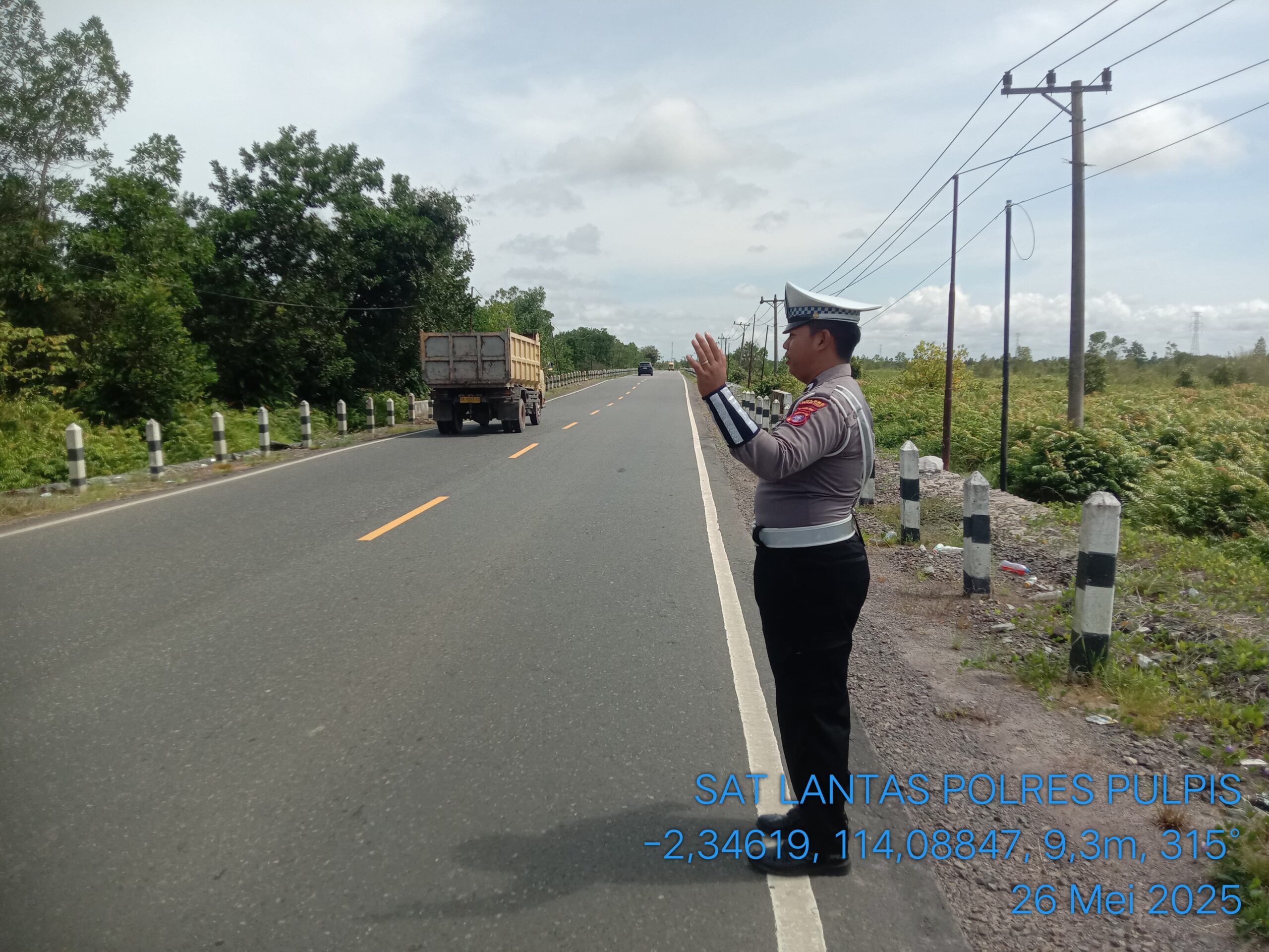 Personil Satlantas Polres Pulang Pisau melaksanakan patroli di kawasan Rawan Laka (Rawan Kecelakaan), Senin (26/5/2025) siang