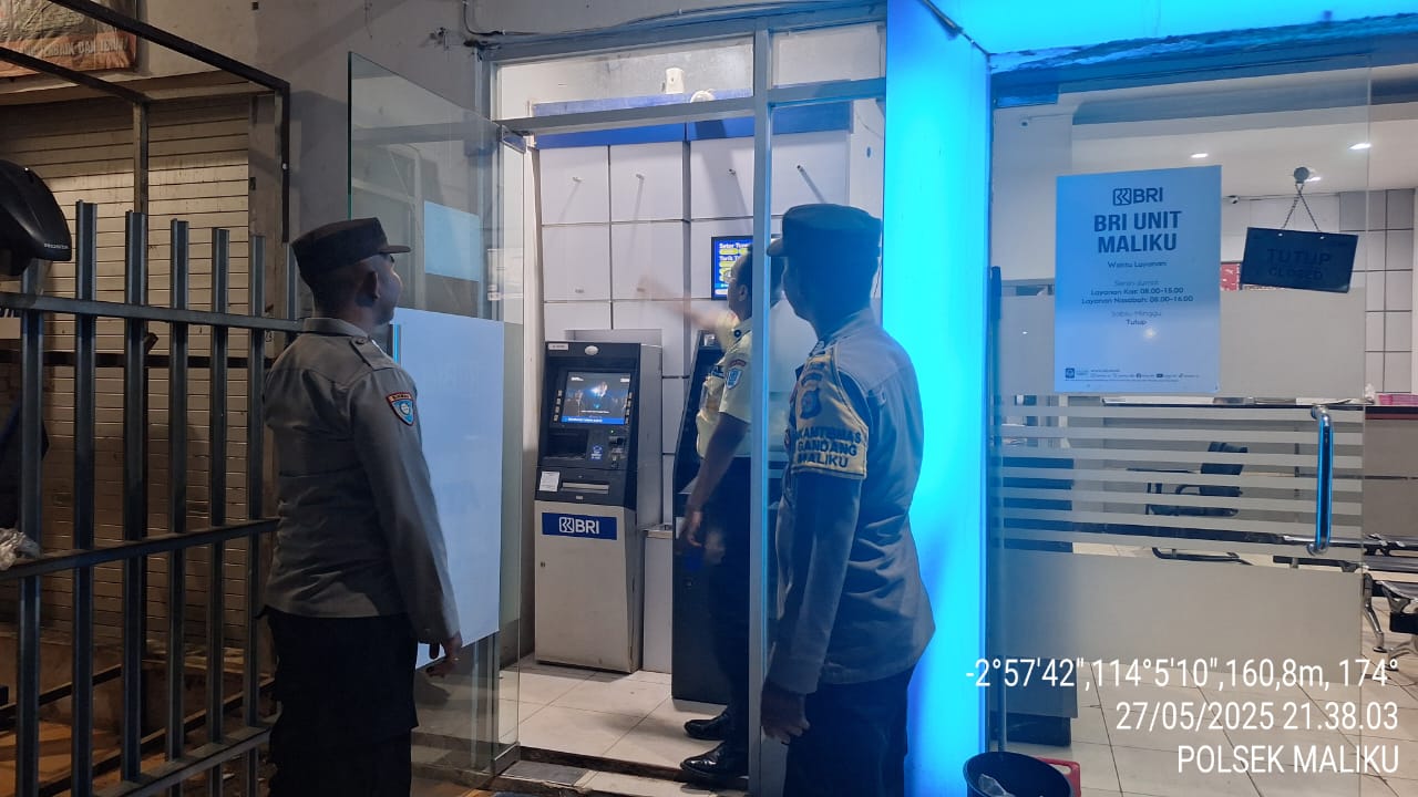 Polres Pulang Pisau – petugas patroli Polsek Maliku, Polres Pulang Pisau, Polda Kalteng, sampaikan himbauan kamtibmas untuk petugas jaga dilingkungan obyek vital Bank Bri unit Maliku, Jln. Tjilik Riwut Desa Maliku Baru dalam rangka harkamtibmas di wilkum Polsek Maliku tetap kondusif, Selasa (27/05/2025) Malam.