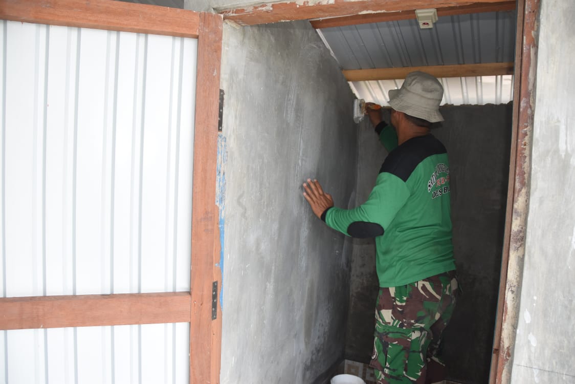 Pada hari Jumat, 30 Mei 2025, terpantau anggota Satgas TMMD sedang melaksanakan pengecatan bagian WC