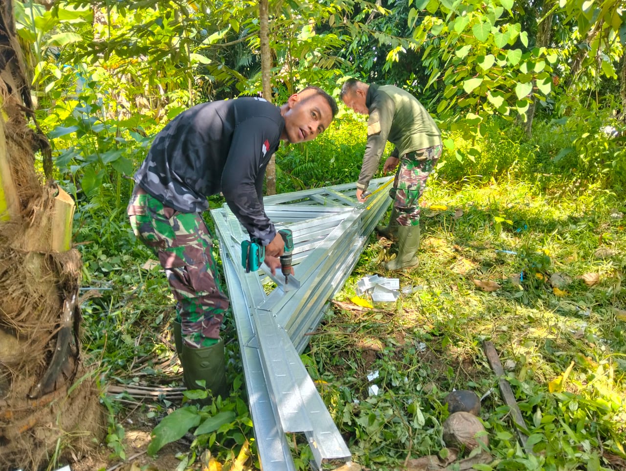 Pantauan pada pagi hari ini, Selasa (20/5/2025), memperlihatkan anggota Satgas TMMD ke-124 Kodim 1002/HST tengah fokus merakit kuda-kuda atap rumah Ardiansyah. Langkah ini merupakan bagian penting dalam proses penyelesaian rehab RTLH agar rumah tersebut segera dapat dihuni dengan aman dan nyaman.