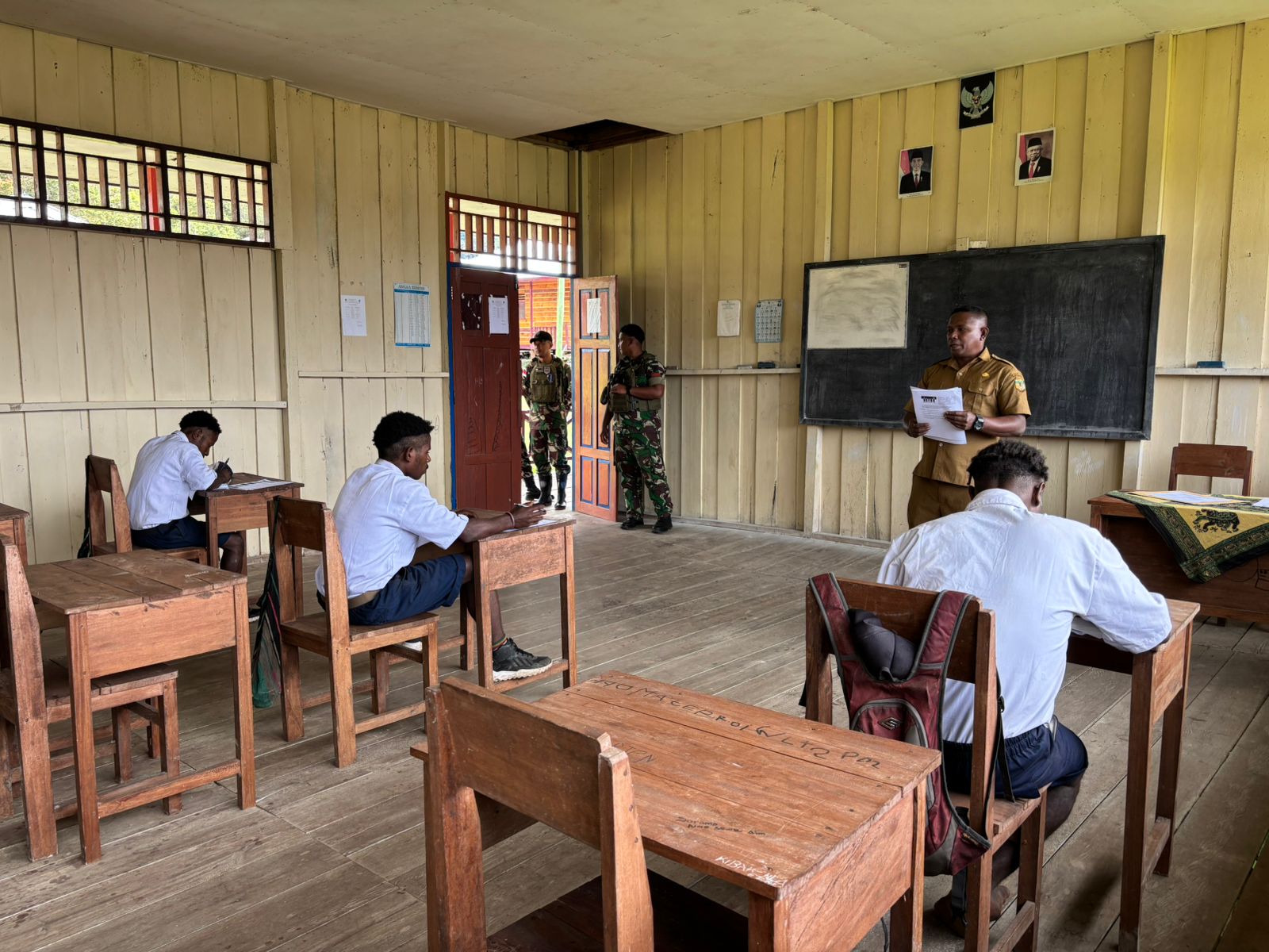 Jila – Satgas Pengamanan Objek Vital Nasional (Pam Obvitnas) PT Freeport Indonesia dari Yonif 611/Awang Long turut berperan aktif dalam mendukung dunia pendidikan dengan membantu pihak sekolah sebagai pengawas Ujian Akhir Sekolah (UAS) bagi siswa-siswi kelas IX di SMP Negeri Jila. Rabu (07/05/2025).