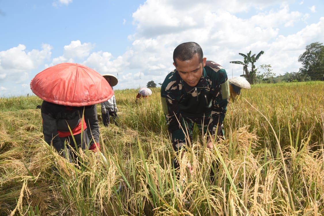 HARUYAN, HULU SUNGAI TENGAH – Sinergi antara TNI dan masyarakat terus terjalin erat dalam pelaksanaan TNI Manunggal Membangun Desa (TMMD) ke-124 tahun 2025 di Haruyan, Hulu Sungai Tengah. Usai berjibaku menyelesaikan pembangunan jalan, anggota Satgas TMMD Kodim 1002/HST menunjukkan kepeduliannya dengan turut serta membantu petani memanen padi.Senin (12/05).