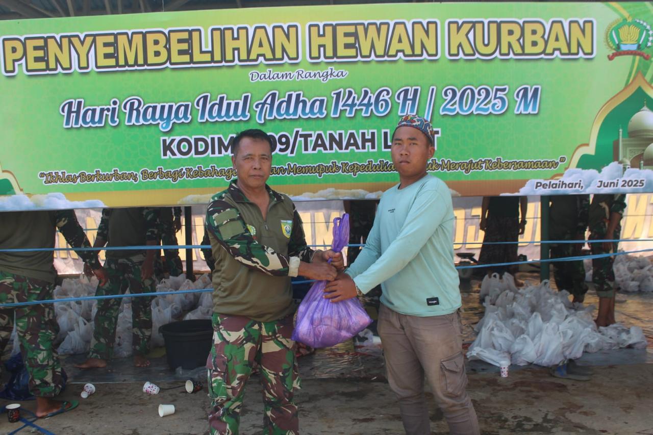 “Adapun daging kurban akan kami serahkan kepada panti asuhan yang ada di sekitar kota Pelaihari, Yayasan tuna netra, Pepabri Tanah Laut dan warga kurang mampu di sekitar Makodim 1009/Tla,” lanjutnya.
