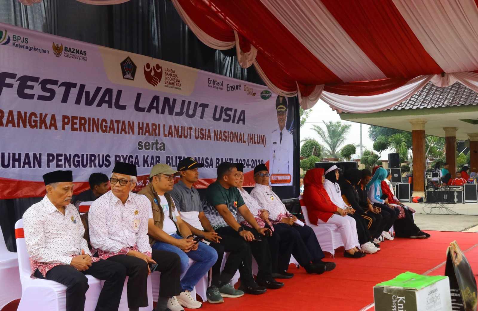 Selaku ketua penyelenggara Plt. Kadinsos Kabupaten Blitar Ibu Sri Nurhayati, S.Sos selaku Ketua Penyelenggara. Turut hadir sejumlah tokoh penting, antara lain Drs. H. Rijanto, MM (Bupati Blitar), Dr. H. Mashut, M.Si (Ketua PYGA Prov. Jawa Timur), Letkol Inf. Hendra Sukmana, M.Han (Dandim 0808/Blitar), Kompol Wirna Maria, SH (Kabag Log Polres Blitar), Lettu Inf. Budianto (Dankima Yonif 511/DY), dr. Endah Woro, MMRS (Dirut RSUD Ngudi Waluyo Wlingi), Ibu Ninik Tjatur Anggraini, A.Md (Ketua TP PKK Kab. Blitar), Hj. Arina Beky Herdihansah (Ketua Perwosi Kab. Blitar), Para pejabat OPD, Kader PYGA se-Kabupaten Blitar, serta ratusan lansia dari berbagai wilayah.