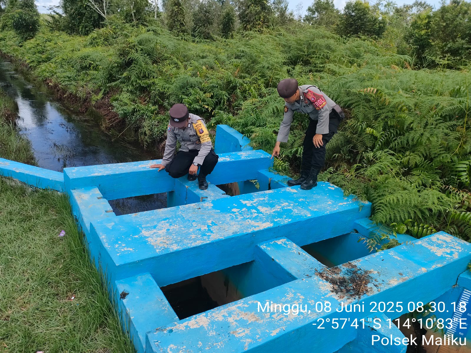 Polres Pulang Pisau – Personel Polsek Maliku, Polres Pulang Pisau, Polda Kalteng, melaksanakan kegiatan patroli mengecek kondisi parit galian dan sekat kanal di daerah rawan karhutla, intensitas curah hujan dalam minggu ini masih normal sehingga volume air diparit galian masih aman, Minggu (08/06/2025) Pagi