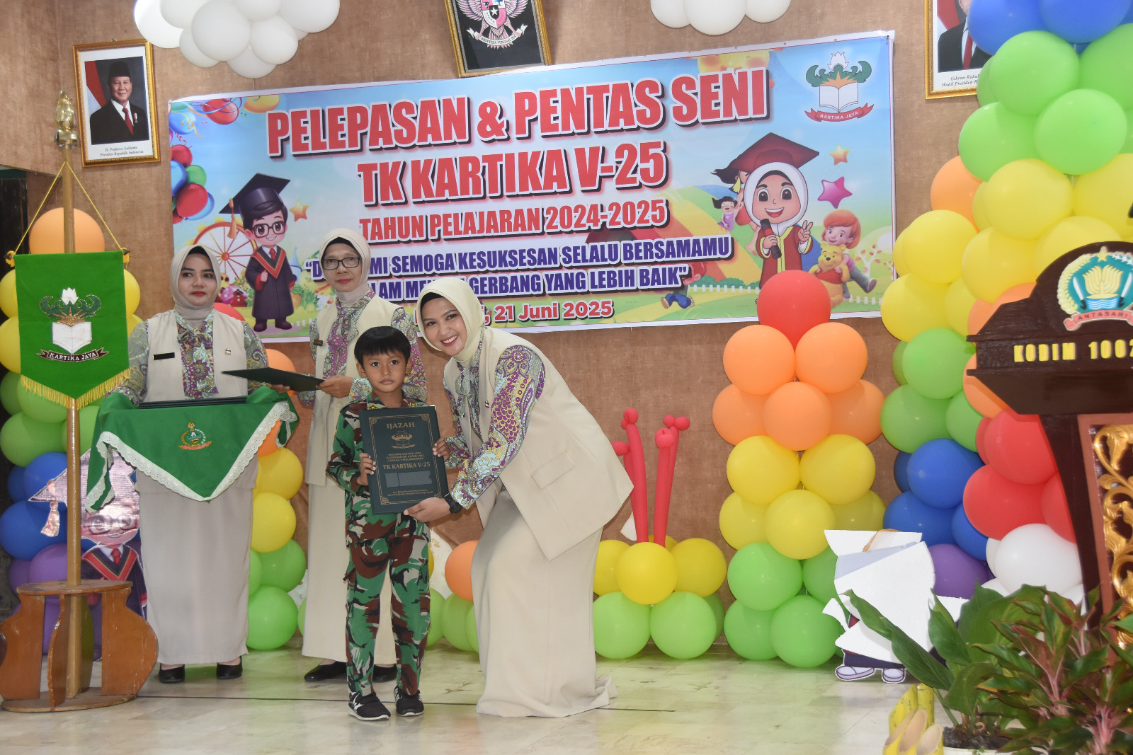 Barabai, Suasana haru dan bahagia menyelimuti Aula Sapta Marga Kodim 1002/HST pada Sabtu (21/6) saat TK Kartika V-25 Barabai menyelenggarakan Pentas Seni sekaligus prosesi pelepasan peserta didik Tahun Ajaran 2024–2025.