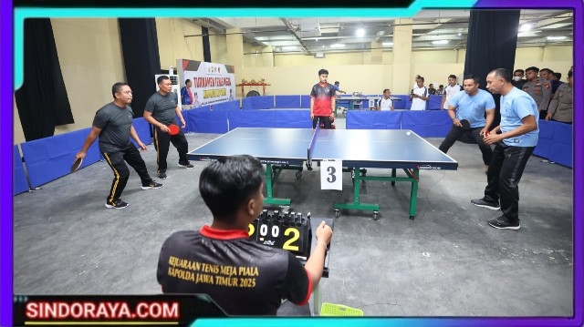 Sindoraya.com, Surabaya, – Kepolisian Daerah Jawa Timur menggelar Tenis Meja Kapolda Cup tahun 2025 dalam rangka Hari Bhayangkara ke-79 di Gedung Dojo Mapolda Jatim, Kamis (19/6/25).