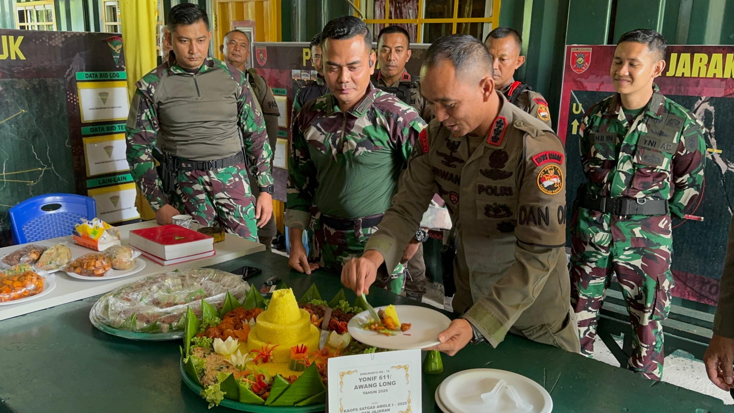 Mimika, Papua Tengah – Dalam rangka memperingati Hari Ulang Tahun ke-75 Yonif 611/Awang Long, Satgas Pengamanan Objek Vital Nasional (Pam Obvitnas) PT Freeport Indonesia yang bertugas di Pos MP 37 mendapat kunjungan kehormatan dari Kepala Operasi Amole I-2025 (KAOPS GAS Amole 1-2025), Kombes Pol Irwan Yuli Prasetyo, S.I.K., M.M. Minggu (01/06/2025).