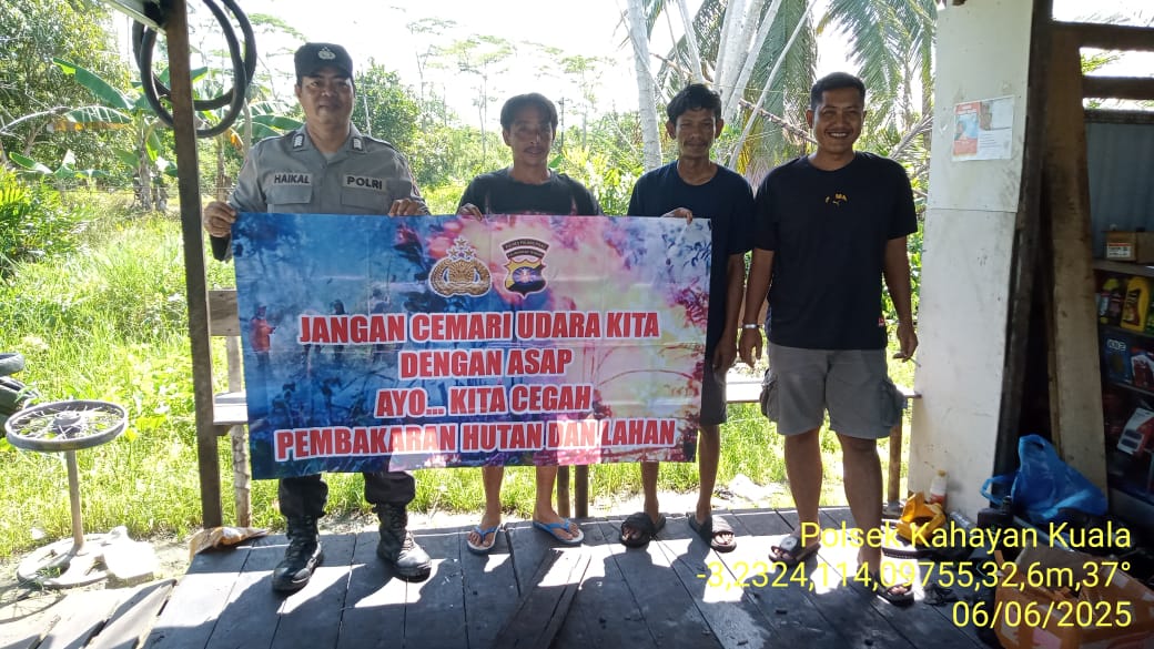 Polres Pulang Pisau- Polsek kahayan kuala, Resor Pulang Pisau, Polda Kalteng, melakukan sambang dan himbauan warga agar tidak membakar hutan dan lahan di Kecamatan kahayan kuala, kabupaten pulang pisau, Jum’at (06/06/2025).Jam.09.00 Wib.