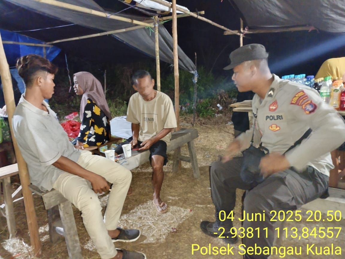 Polsek Sebangau Kuala – Polres Pulang Pisau, Polda Kalteng, memberikan sosialisasi dan imbauan Kamtibmas kepada masyarakat Kecamatan Sebangau Kuala agar turut serta dalam menjaga Kamtibmas agar tetap kondusif, Rabu (04/06/2025) Malam.