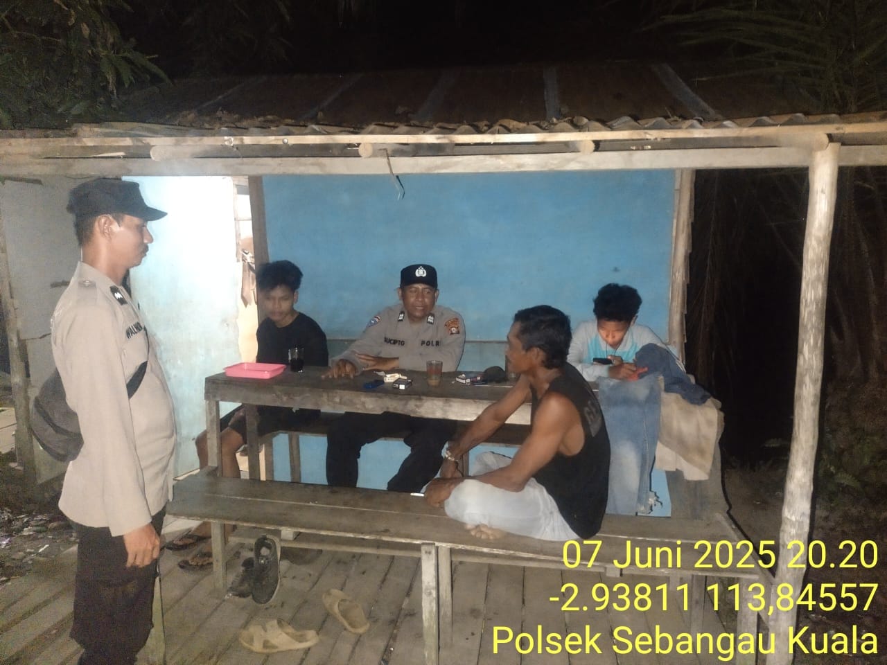 Polsek Sebangau Kuala – Polres Pulang Pisau, Polda Kalteng, memberikan sosialisasi dan imbauan Kamtibmas kepada masyarakat Kecamatan Sebangau Kuala agar turut serta dalam menjaga Kamtibmas agar tetap kondusif, Sabtu (07/06/2025) Malam.