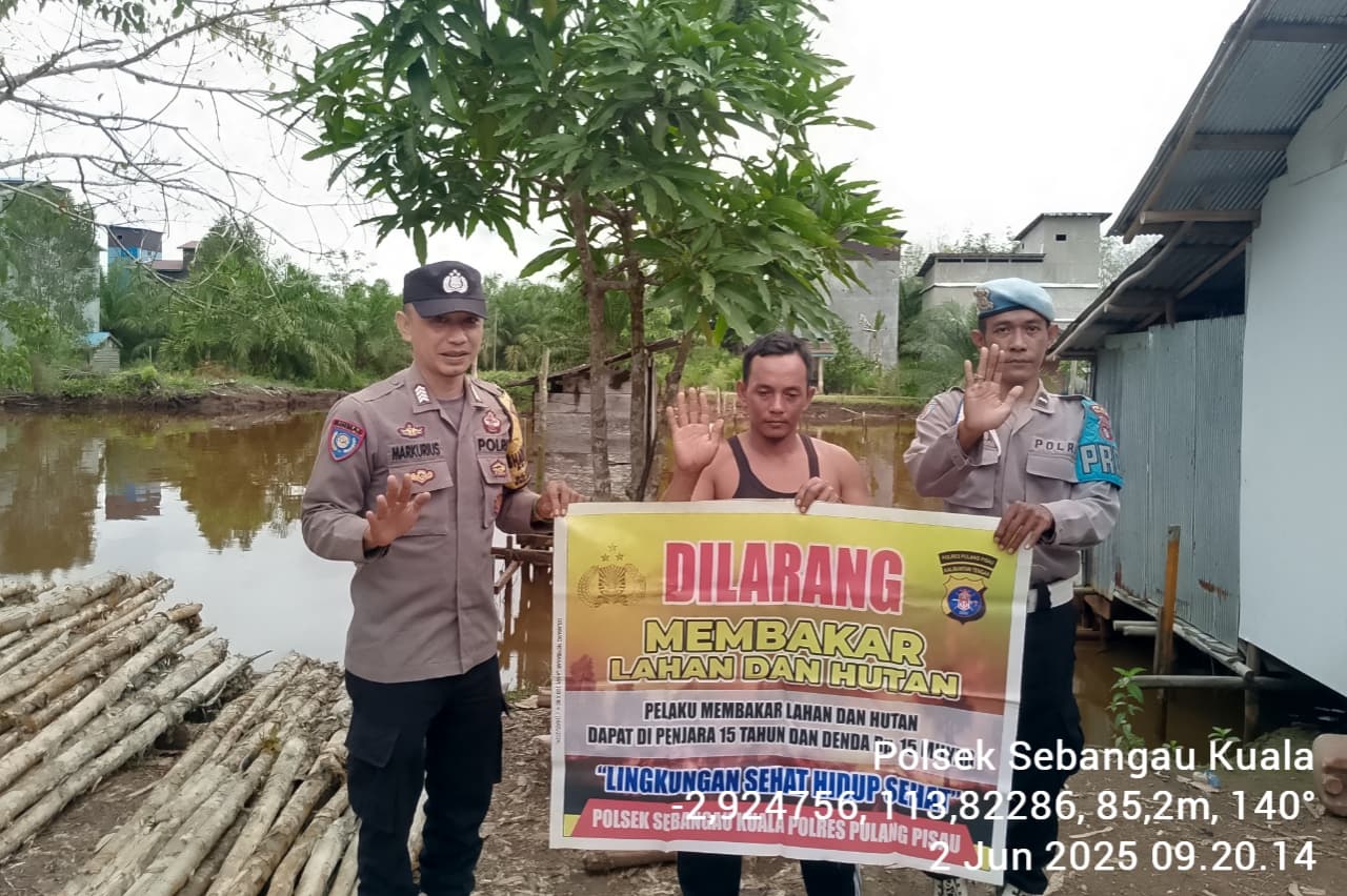 dan himbauan warga agar tidak membakar hutan dan lahan di Kecamatan Sebangau Kuala, kabupaten pulang pisau, Senin (02/06/2025) Pagi.