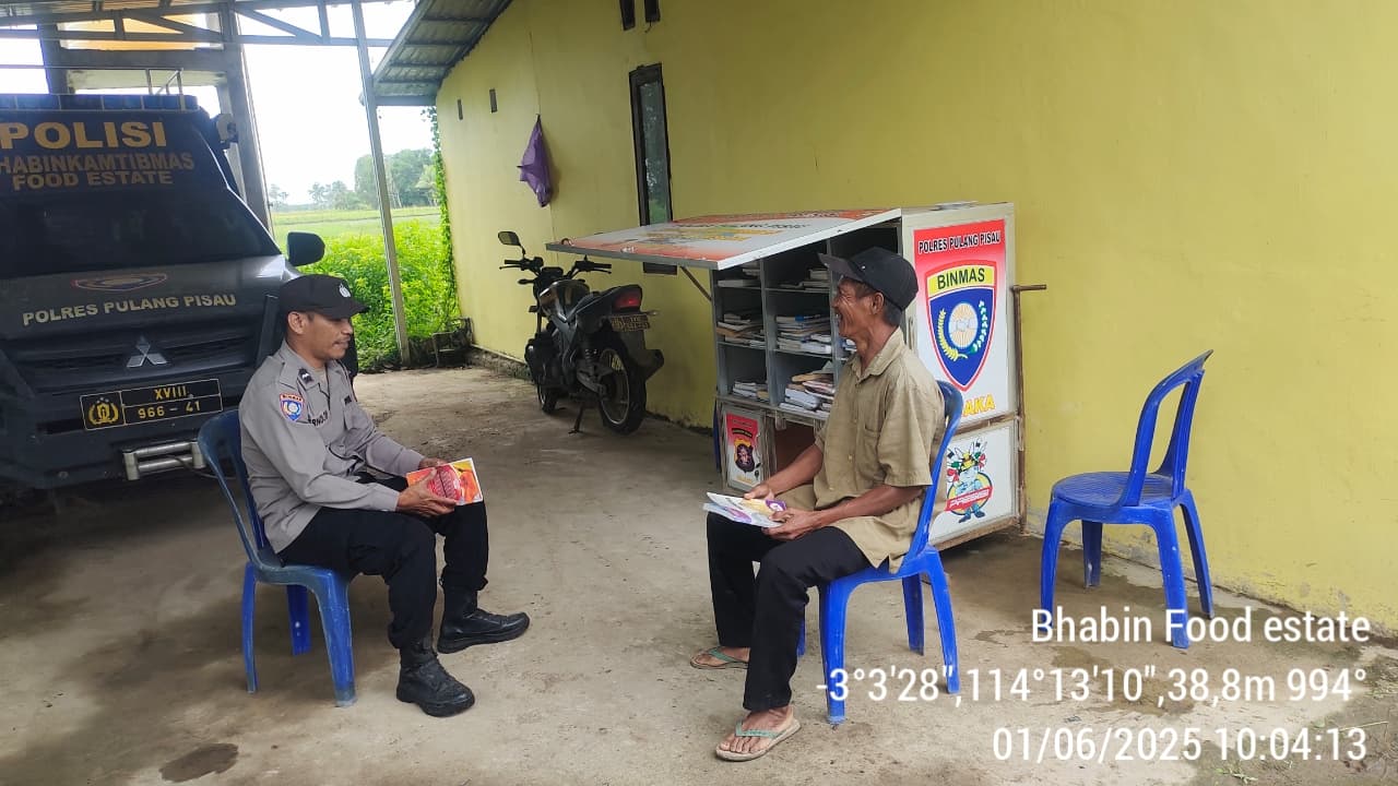 Seperti yang dilakukan oleh Aipda Vivri Wijaya hari ini, mereka berdua mengendarai sepeda motor Bajaka Presisi Polres Pulang Pisau yang membawa buku buku bacaan ke areal persawahan, kemudian mengajak warga yang sedang istirahat untuk membaca buku.