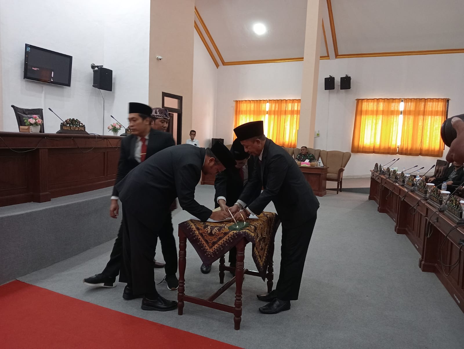 Rapat ditutup dengan penandatanganan Berita Acara Persetujuan Bersama antara DPRD dan Pemerintah Kabupaten Sampang. Dengan kesepakatan ini, Pemkab Sampang dan DPRD menunjukkan komitmen mereka untuk meningkatkan kualitas hidup masyarakat dan menciptakan pemerintahan yang baik.