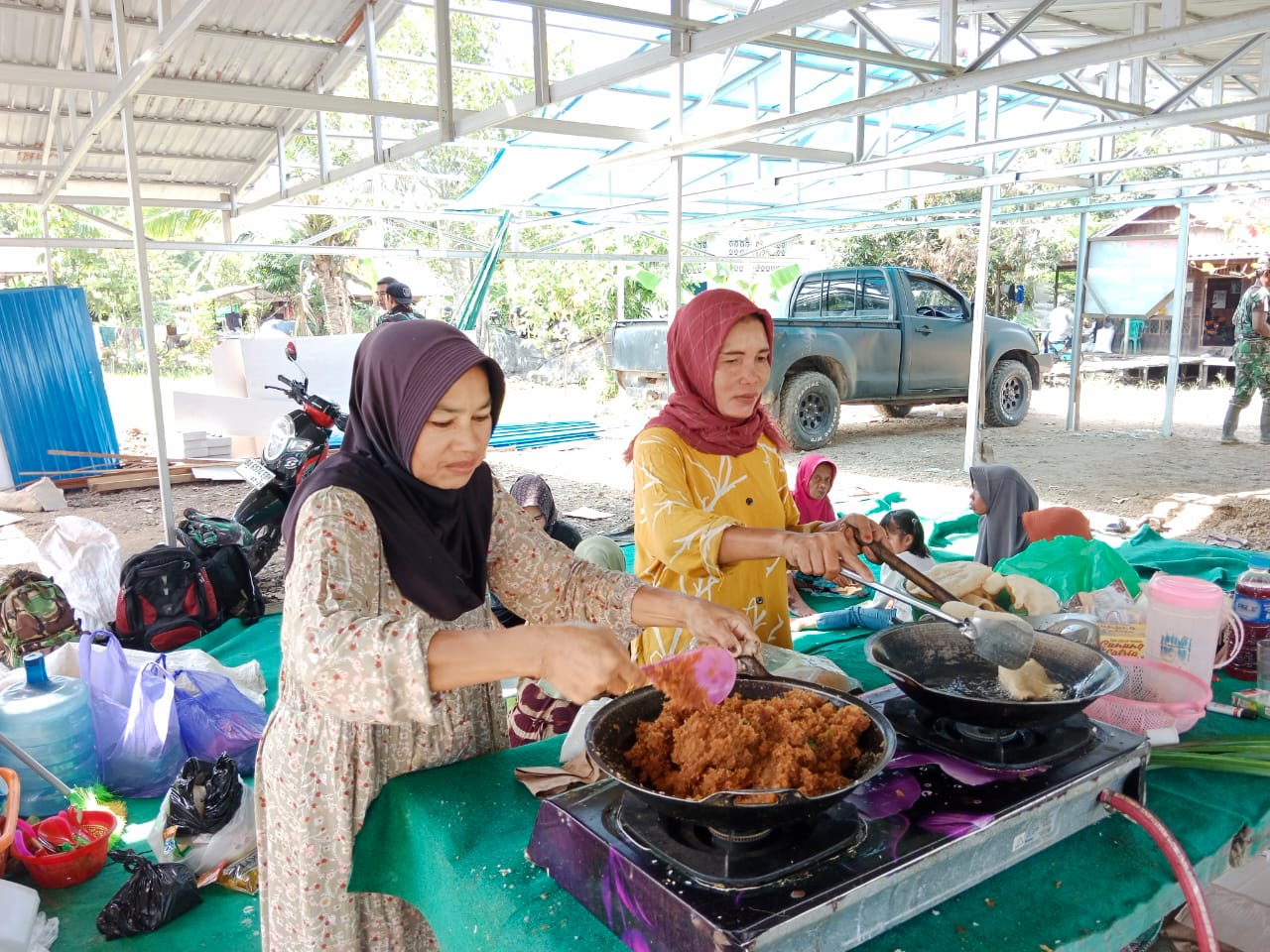 Ibu-ibu di sekitar lokasi TMMD tak pernah absen menunjukkan kepeduliannya dengan menyiapkan makan siang bagi anggota Satgas TMMD.