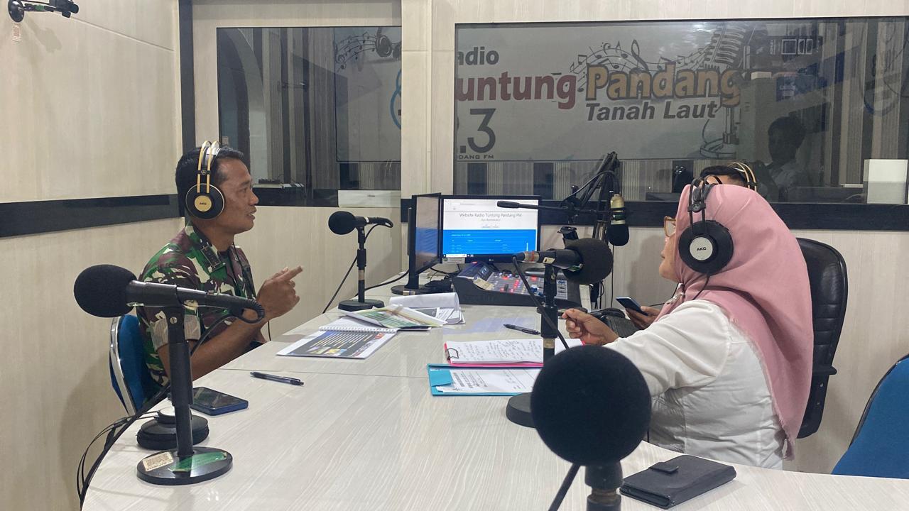 Tanah Laut – Komandan Distrik Militer (Dandim) 1009/Tanah Laut Letkol Inf Indar Irawan, S.E., M.Han., diwakili oleh Perwira Seksi Teritorial (Pasi Ter) Kapten Inf Jodi Mudasir menjadi narasumber dalam acara dialog interaktif “Tanah Laut Menyapa” bertempat di Lembaga Penyiaran Publik Lokal (LPPL) Radio Tuntung Pandang FM, Kompleks Kantor Bupati Tanah Laut, Rabu (18/06/2025).