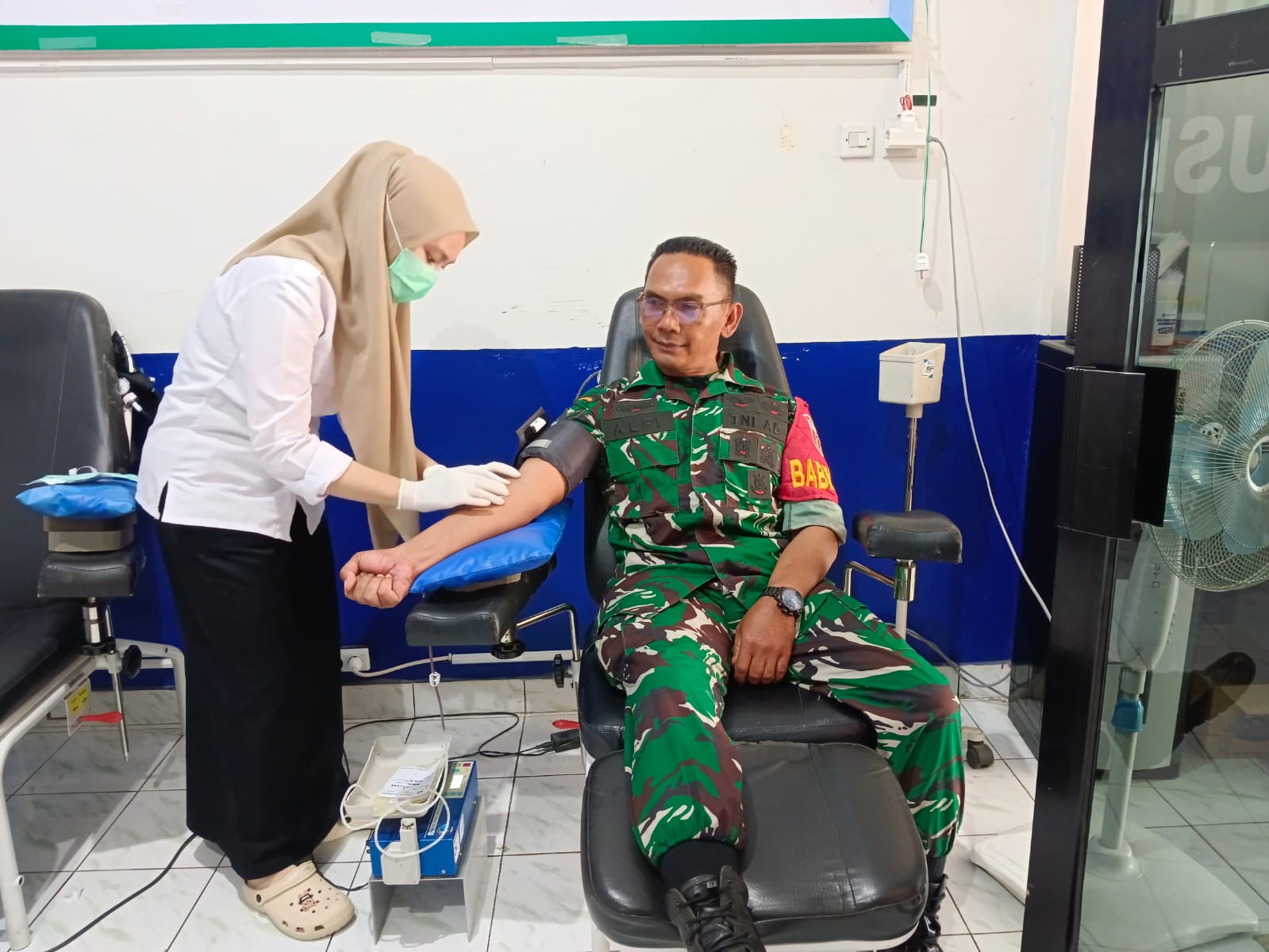 BARABAI, Sertu Alfiannor, Babinsa Koramil 1002-08/Labuan Amas Utara, menunjukkan kepeduliannya yang tinggi terhadap warga binaan dengan mendonorkan darahnya di Unit Transfusi Darah Rumah Sakit H. Damanhuri Barabai pada Jum’at (27/6).