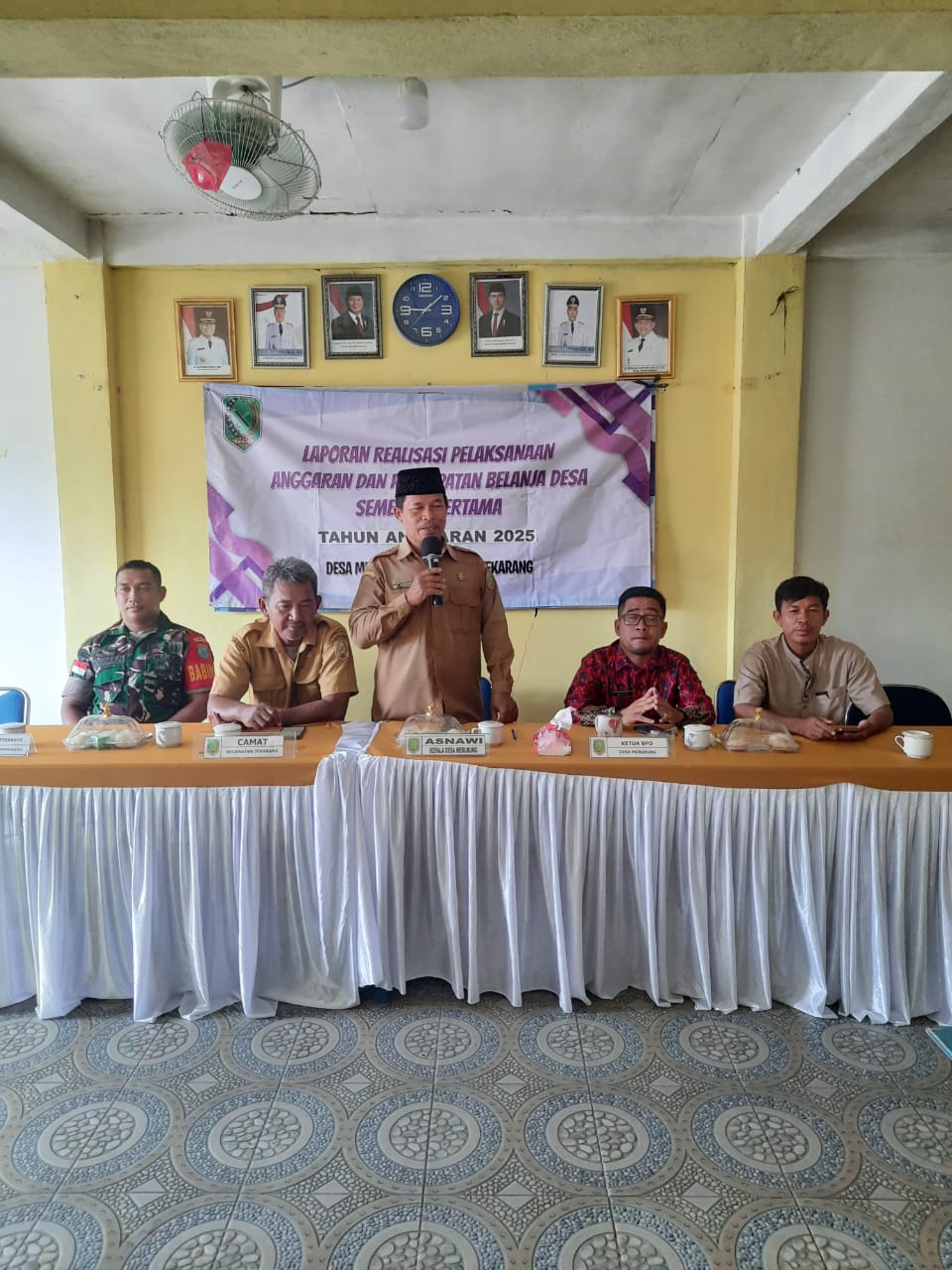 Sambas – Anggota Babinsa Merubung Koramil 03/Tebas Praka Karmadi hadiri kegiatan rapat realisasi Pelaksanaan APBDes Semester 1 Tahun Anggaran 2025 yang bertempat di Kantor Desa Merubung Kec.Tekarang Kab. Sambas, Senin (07/07/25).