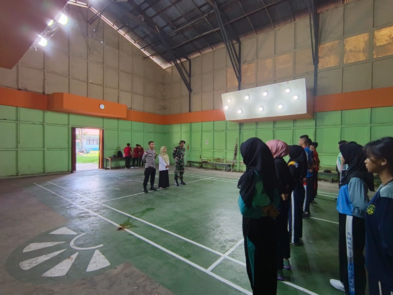 Sambas – Demi kelancaran pelaksanaan HUT RI ke 80 di Kecamatan Teluk Keramat, Serda Irawan Setiadi Anggota Koramil 07/Teluk Keramat Dan Bhabinkamtibmas laksanakan kegiatan seleksi TIM Paskibraka yang diselenggarakan di Gedung Olahraga, Desa Sekura, Kec. Teluk Keramat, Kab Sambas, Kamis (10/07/25).