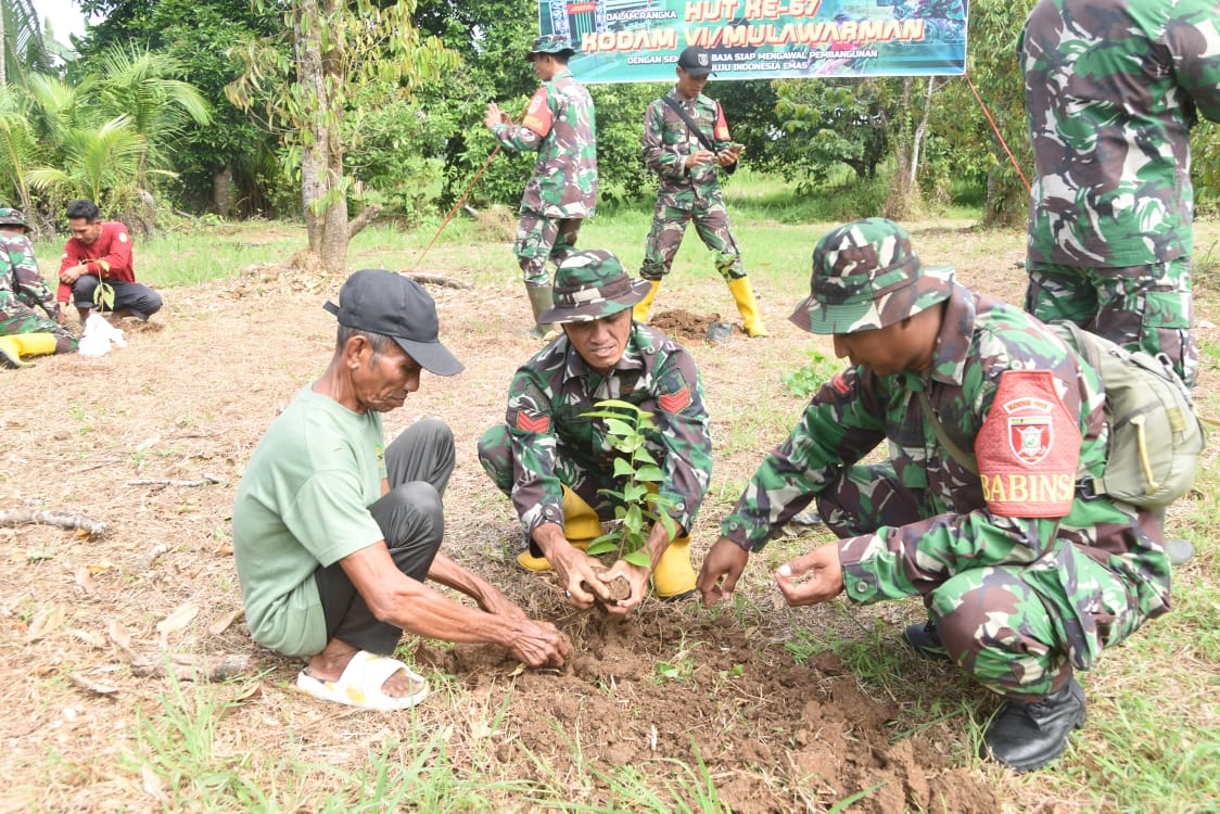 Barabai,Dalam rangka menyambut Hari Ulang Tahun (HUT) ke-67 Kodam VI/Mulawarman, Kodim 1002/Hulu Sungai Tengah menggelar kegiatan penanaman pohon. Sedikitnya 200 pohon ditanam di Desa Pengambau Hilir Luar, Kecamatan Haruyan, Kabupaten Hulu Sungai Tengah pada Rabu (2/7).